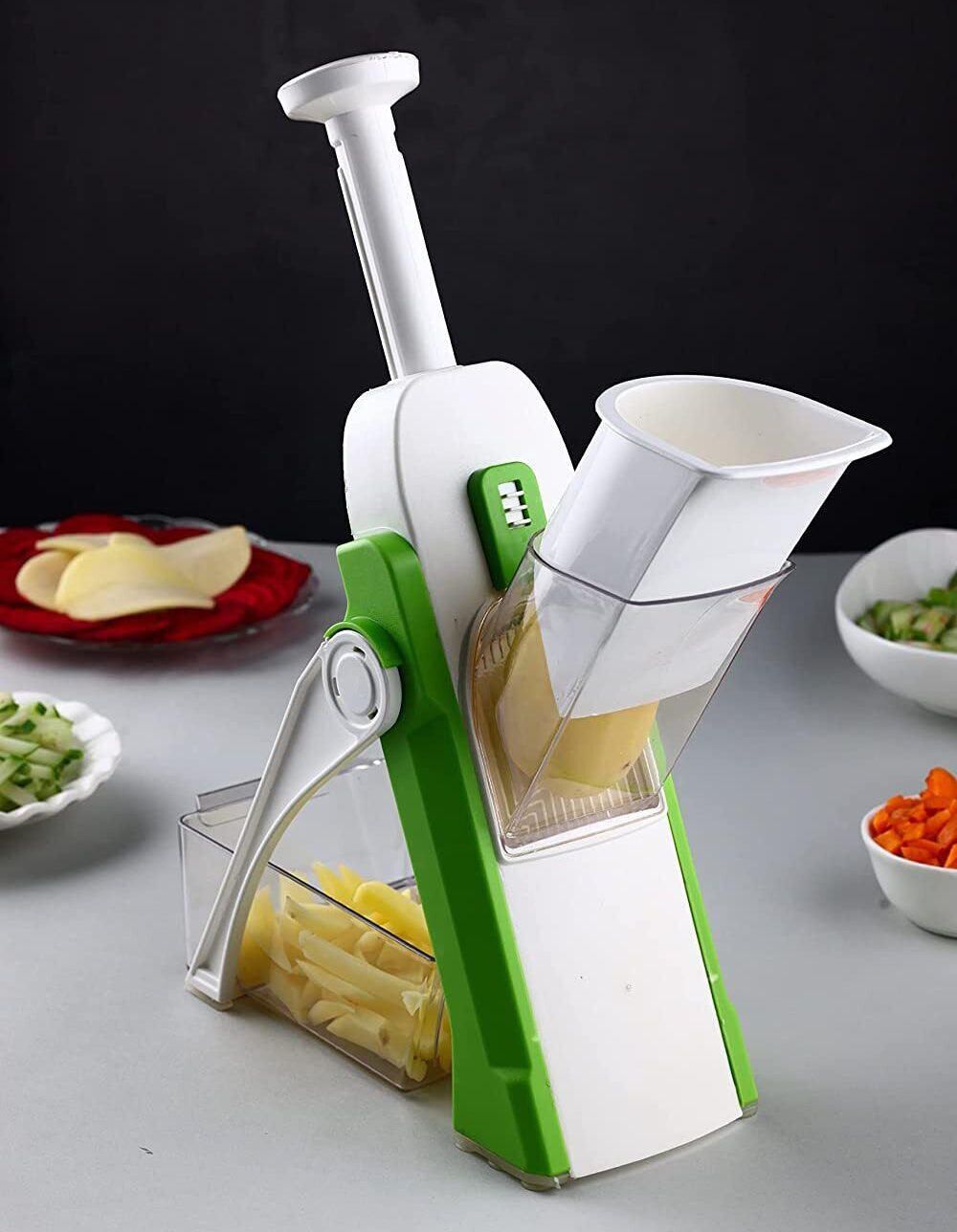 Hak grøntsager, frugt, kartofler og meget mere med præcision og lethed. Den justerbare skærefunktion giver mulighed for at tilpasse tykkelse og form til enhver ret.